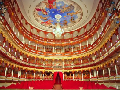 Built on the ruins of the old Church of La Merced (1625) to commemorate the Centennial of Independence in 1911. In 1998 it was restored under the direction of the Cartagena architect Alberto Samudio Trallero as a cultural center for performing arts and music. Theater built in the shape of a horseshoe with boxes and balconies divided by lattices of zero, that seem lace, originally served for ventilation. Stairs and sculptures of Italian marble with Boca curtain and ceiling beautifully created by the Cartagena artist Enrique Grau.
